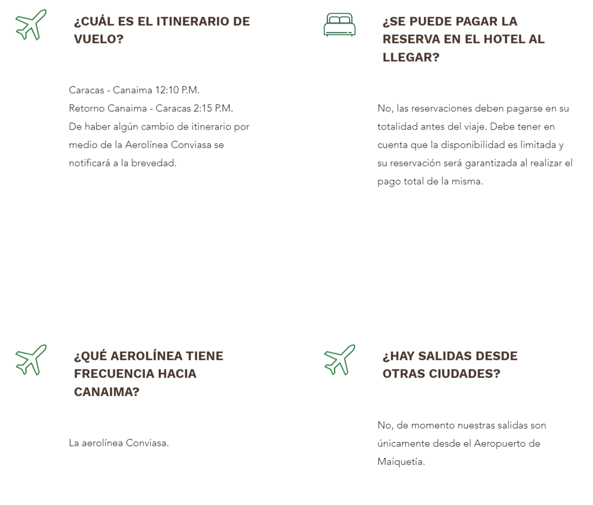 Es necesario realizar las reservas de jueves a domingo o de domingo a jueves, solo esos dias hay vuelos directos a Canaima , puedes reservar en nuestra con nosotros o puede reservar a través de nuestro aliado Internacional : Expidia.com